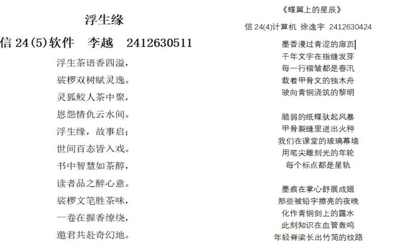 “书香作伴 奋启新程”主题征文活动吸引了众多学子踊跃参与,共收到佳作145篇。参赛作品或纵横古今,或畅想未来,字里行间洋溢着青年学们子的文化自信与创新活力。经专家评审,李越的《浮生缘》与徐逸宇的《蝶翼上的星辰》凭借独特的视角和深刻的思考脱颖而出,荣获一等奖。此次征文既为文学新锐搭建思想交流平台,更为校园文化注入创新表达的蓬勃动能。