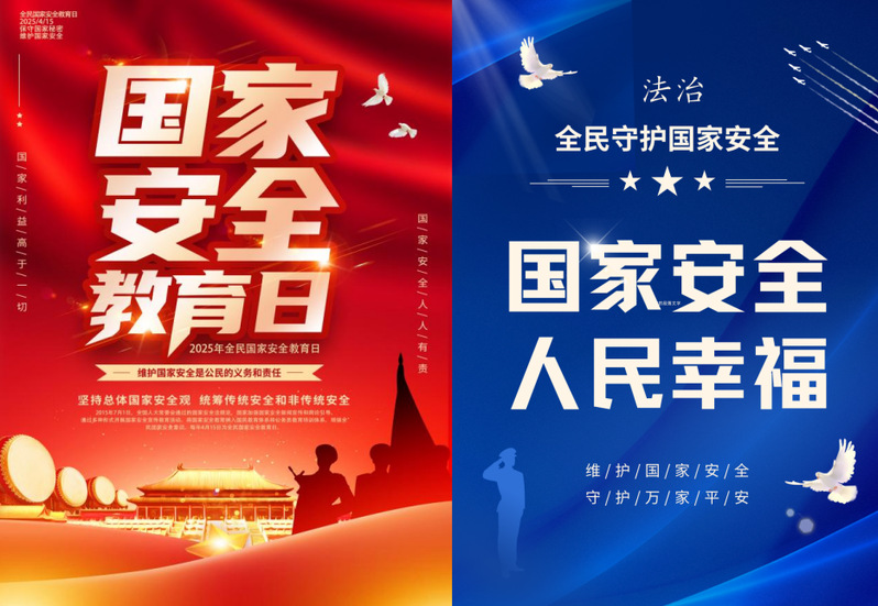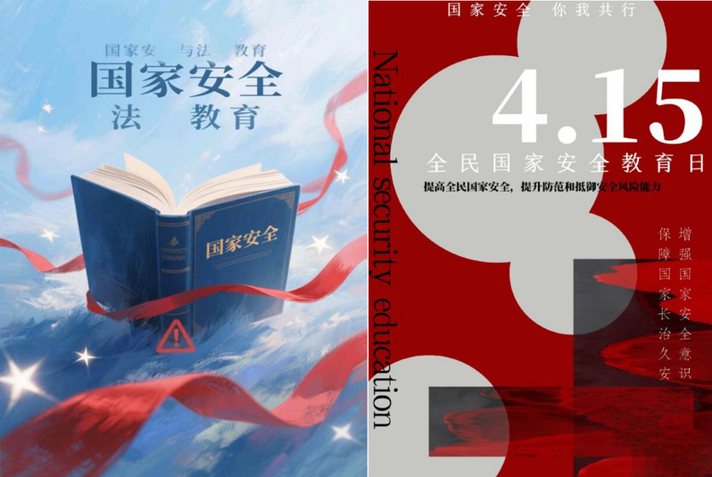 艺术创作传递安全理念。在国家安全教育日的法治宣传海报征集活动中,同学们以“415国家安全日”为主题,运用想象力和创造力,创作出色彩丰富、构图独特、寓意深刻的海报。这些作品涉及政治、国土、军事、经济、文化等安全领域,直观揭示了国家安全的重要性,表达了青年学子维护国家安全的决心。