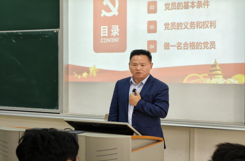 课上,朱立才立足员工群体特点,从申请入党的基本条件、党员权利义务、合格党员标准及实践要求四个维度展开,通过教学科研实践中的生动案例,帮助员工领悟共产党员肩负的时代责任与历史使命。朱立才指出,员工骨干应在日常学习生活中彰显先进性,既要在专业领域争当“排头兵”,也要在社会服务中勇担“勤务员”,充分发挥先锋模范作用。