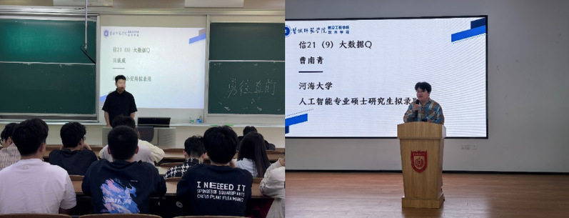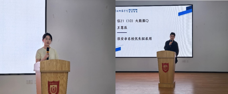 会上邀请了八名2025届拟录取的优秀考研考公学子代表做经验分享。软件工程专业刘欣欣,数字媒体技术专业李思源、曹文杰,物联网专业王盛承,数据科学与大数据专业田威威、曹南青、顾幸泉、王慧辰走上讲台,分享自己的备考经历和复习经验。他们从考研院校专业选择、考公选岗策略、复习时间规划、学习方法技巧、心态调整等方面与同学们进行了交流。