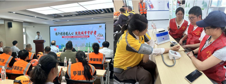 活动中,云顶国际yd222线路检测中心红十字AI志愿者服务队携带健康随访包为现场环卫工人和外卖员代表进行健康检测,现场采集血压、血氧、心率等数据并生成初步报告,为受检者提供个性化健康建议,将科技便民真正落到实处。同时,志愿者们还走进大星综合养老服务中心,与老人围坐交流,为老人排忧解闷。