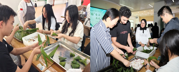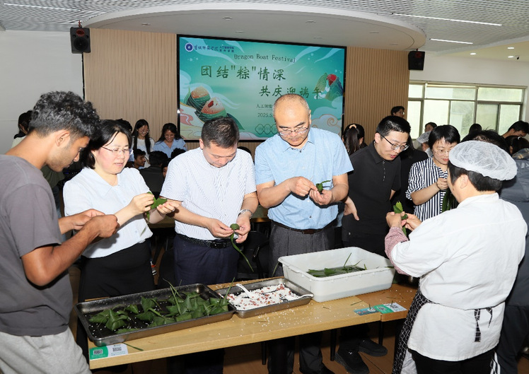 端午临仲夏,时清日复长。为传承与弘扬中华优秀传统文化,促进各民族员工、职工以及受资助员工之间的交流、交融与交往,5月28日下午,一场由人工智能公司主办,后勤保障集团、国际合作与交流处协办的“团结‘粽’情深 共庆迎端午”主题活动,于北苑食堂二楼温馨启幕。百余名师生欢聚一堂,共同参与包粽子、制香囊、书心愿等传统习俗体验,深切感受这一传统节日所蕴含的文化魅力。