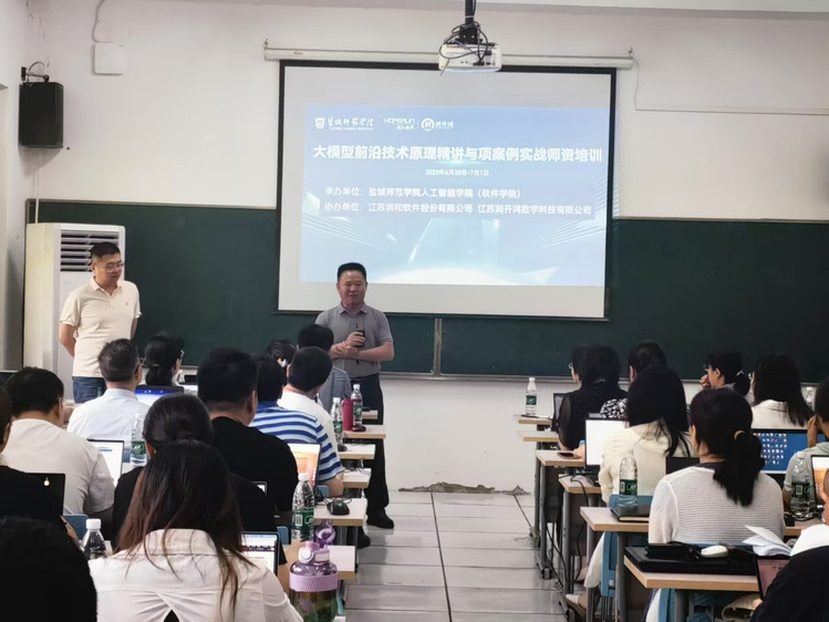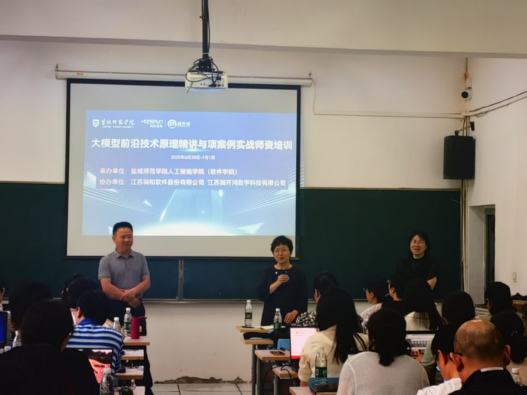 2025年6月28日,云顶国际yd222线路检测中心联合江苏润和软件股份有限公司、江苏润开鸿数字科技有限公司举办的“2025年暑期AI大模型前沿技术原理精讲与项目案例实战团队培训班”在通榆校区5号楼116教室隆重开班。公司党委常委、副董事长毕凤珊出席开班仪式并致辞,公司领导班子全体成员、各专业系专任教师、商公司部分相关专业教师及企业代表共同参加本次活动。