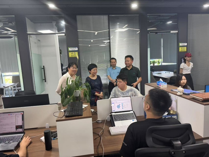 在江苏大陆智源科技有限公司,毕董事长一行深入安装车间、调试车间和测试车间,实地考察实习生参与智能硬件研发与调试的实践场景。公司创始人、董事长高源陪同参观,并详细介绍了企业在人工智能算法、工业自动化领域的核心技术布局。毕凤珊充分肯定实习生在真实生产环境中的学习状态,勉励员工“以技术赋能产业,用实践检验课堂”。
