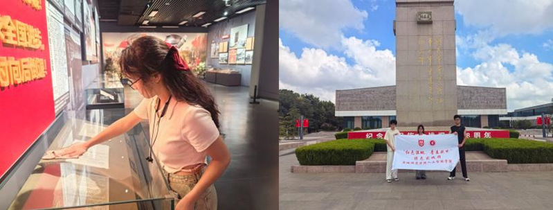 由信24(3)班仓鑫带领的实践团队,以纪念馆实际需求为导向精准施策。清理组开展展柜深度清洁维护,通过系统擦拭与隐患排查,使文物展陈面貌显著改善,助力红色湿地历史细节完整呈现;引导组立足关键点位提供三位一体服务,既完成路线导览、历史讲解等专业引导,又针对特殊群体开展个性化帮扶,有效深化游客对新四军历史的认知维度,全面优化纪念馆参观服务效能。