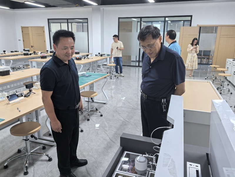 座谈结束后,刘德仿在朱立才经理等人陪同下,实地参观了基地的教学实训区、科研实验室及校企联合工作室。在各功能区域,工作人员详细介绍了教学设备配置、科研项目进展及校企合作案例,刘德仿对基地“教学-科研-产业” 一体化的建设成效给予高度评价,为地方高校应用型转型提供了可借鉴的实践样本。