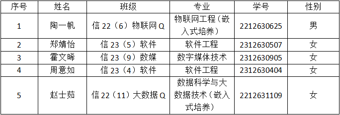 根据《关于开展2025年国家奖学金、国家励志奖学金、国家助学金评定工作的通知》(盐师院学〔2025〕35号)文件精神,通过个人申请、班级推荐、专家组评审、公司党政联席会议审核同意,现拟推荐陶一帆等5位同学为2025年国家奖学金获得者。